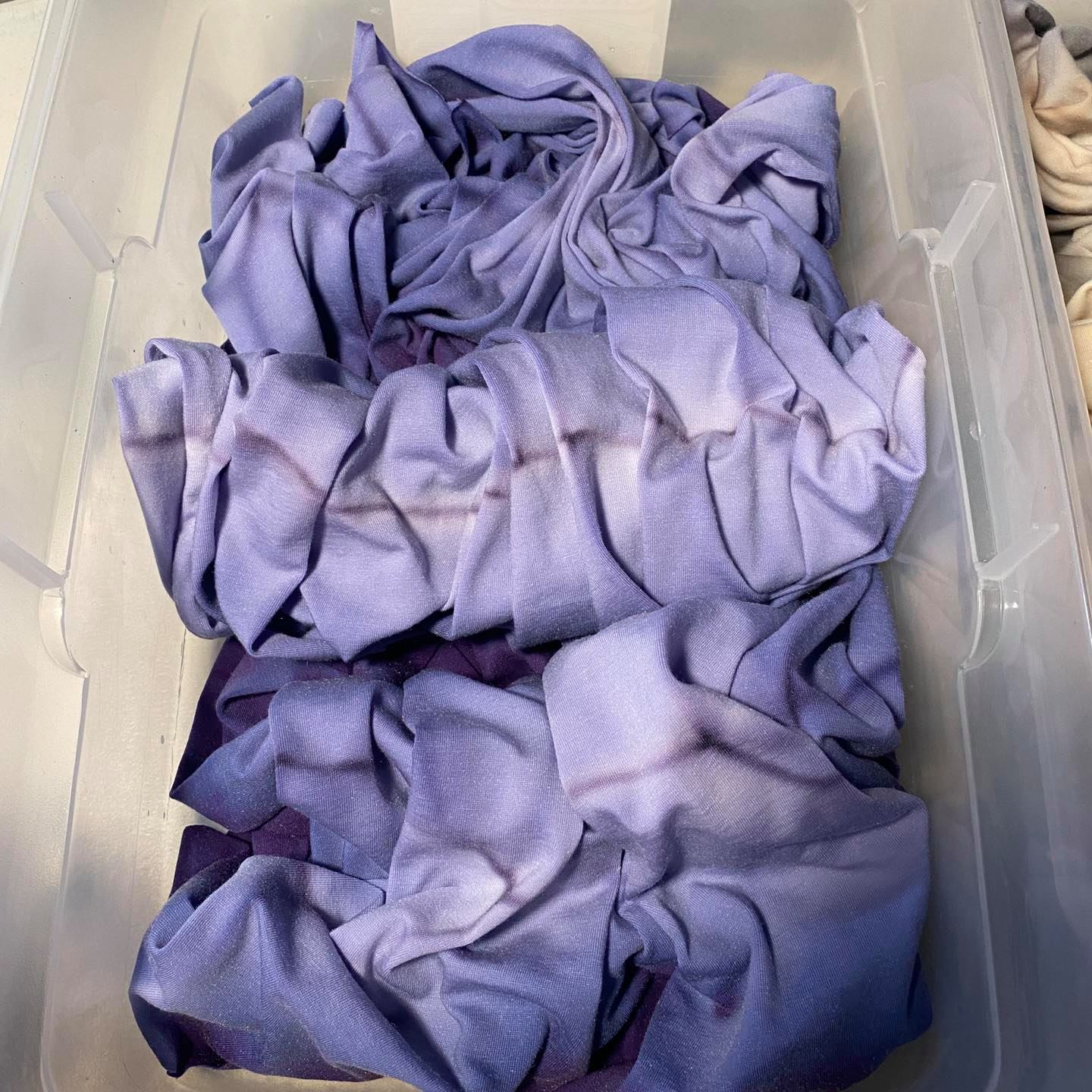 Each garment is made one at a time in my home studio, named The Fungeon. After construction each piece is hand dyed with fiber reactive dyes and low impact dying methods making each item a truly unique, one of a kind piece of wearable art.