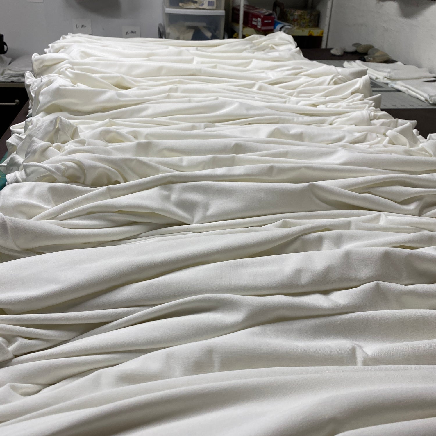 All fabrics for TreeShine clothes are chosen with Our Earth in mind. The white fabric used in most of our clothes is made with sustainably harvested bamboo, organic cotton, and a small bit of spandex for stretch. Some designs are also produced from salvaged fabrics destined for landfills. All patchwork items are made from scraps and upcycled fabrics.