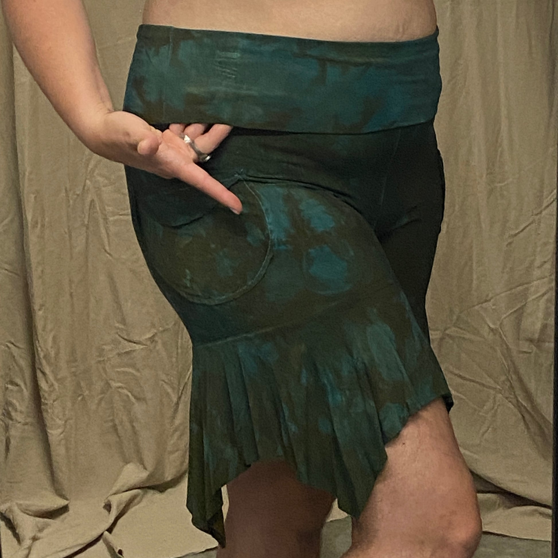 Made from an organic cotton bamboo stretch jersey, they have amazing stretch memory. They feature a high waistband, pixie points, and pockets!