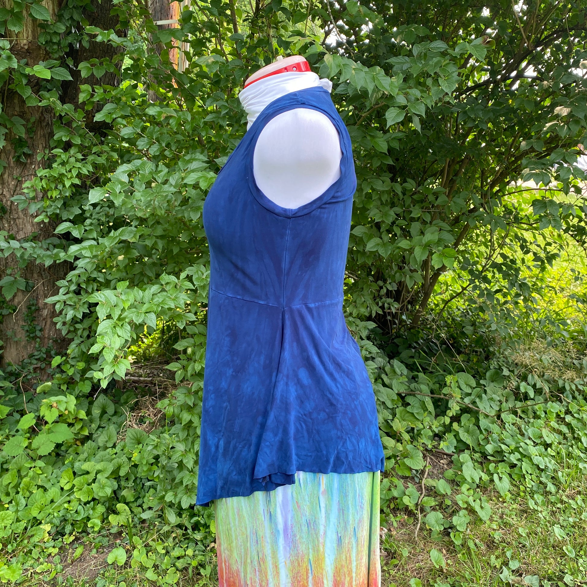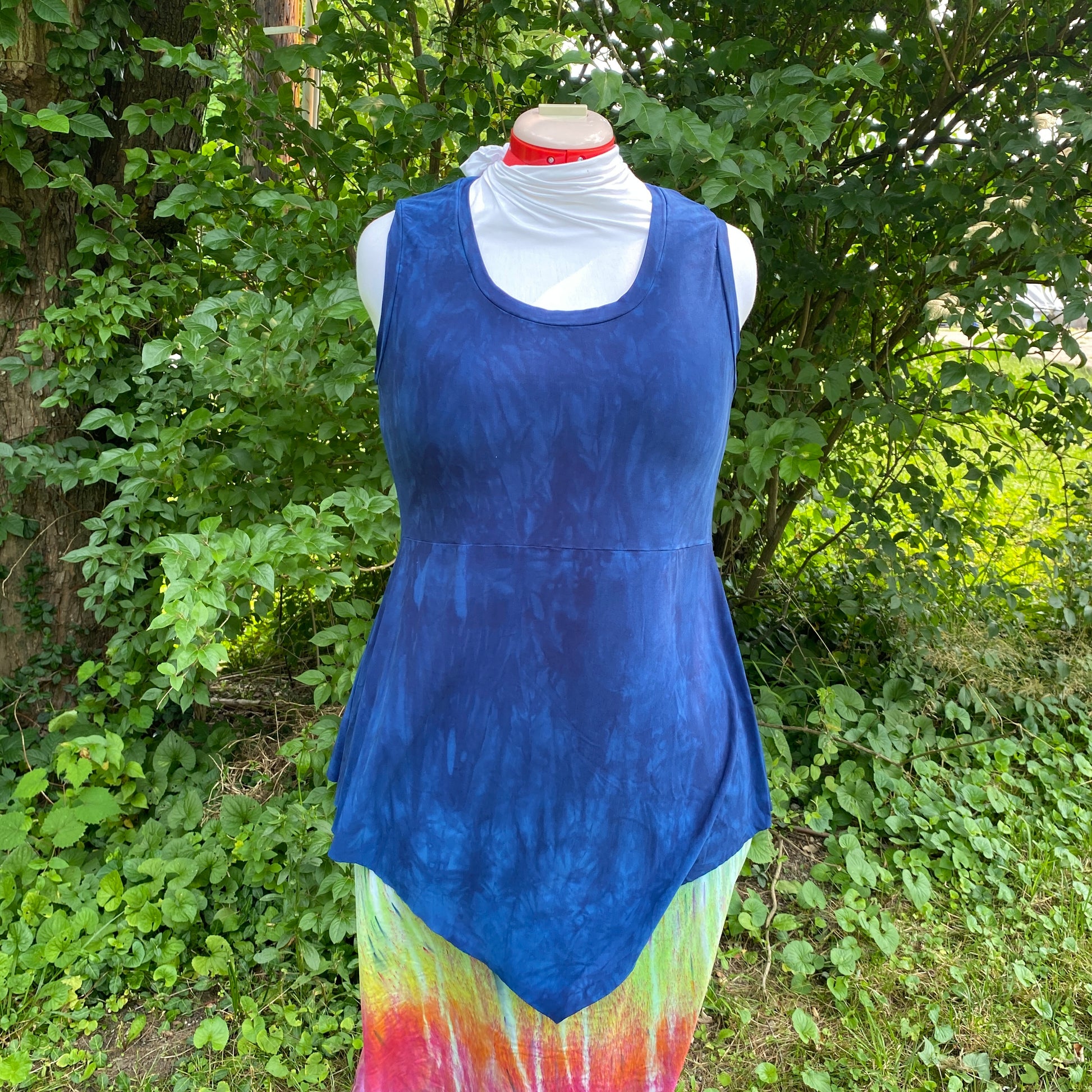 All items are hand dyed with fiber reactive dyes using low impact dying methods with a major focus on water conservation and reducing waste throughout the entire process.