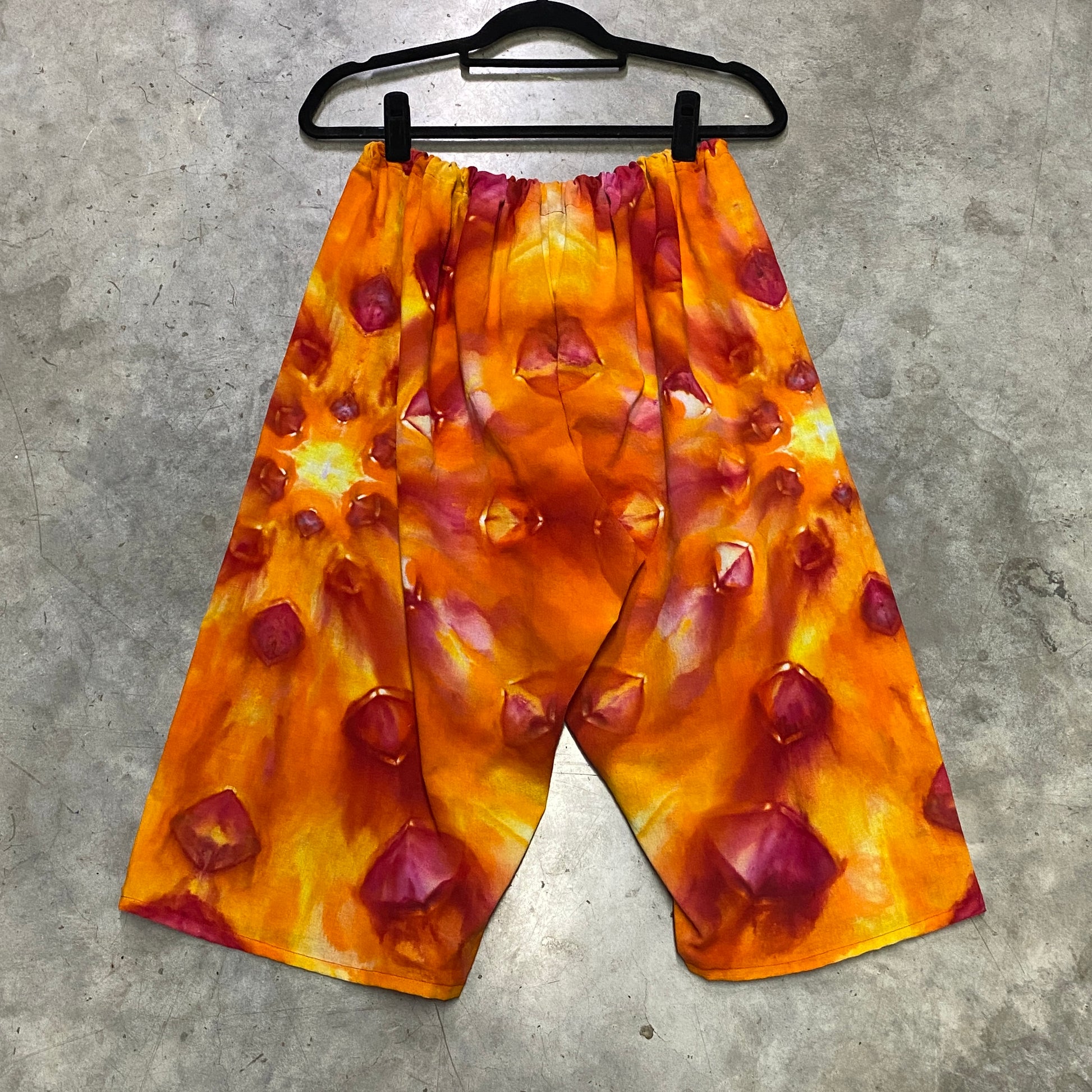 Drawstring pants made from organic cotton tea towels that have been in my inventory way too long. Fits up to 48 inch hip.
